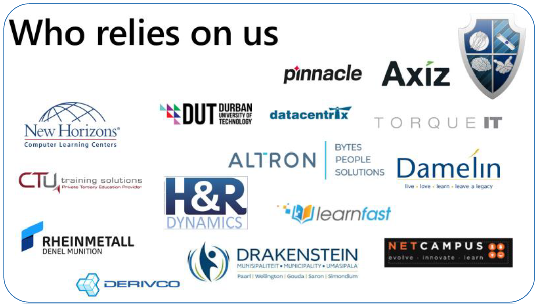 As an Accredited Microsoft Imagine Academy with Microsoft Certified Trainers that are constantly consulting in the technologies that we teach, our clients are all confident that the solutions we recommend are based on International Best Practises and are secure products and platforms that can take them into the Fourth Industrial Revolution.